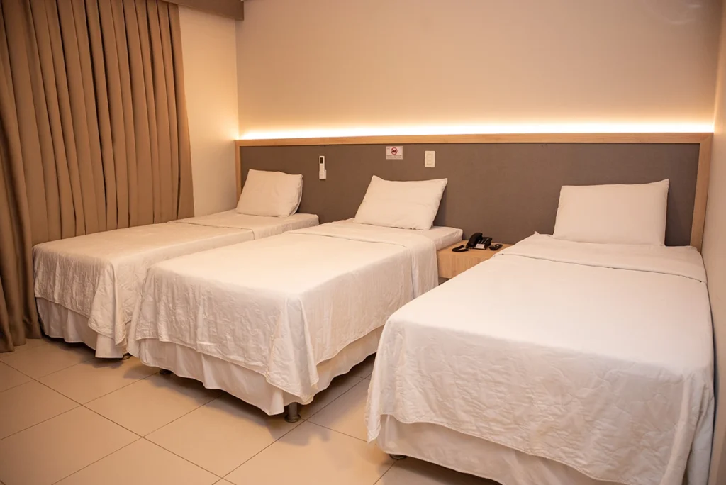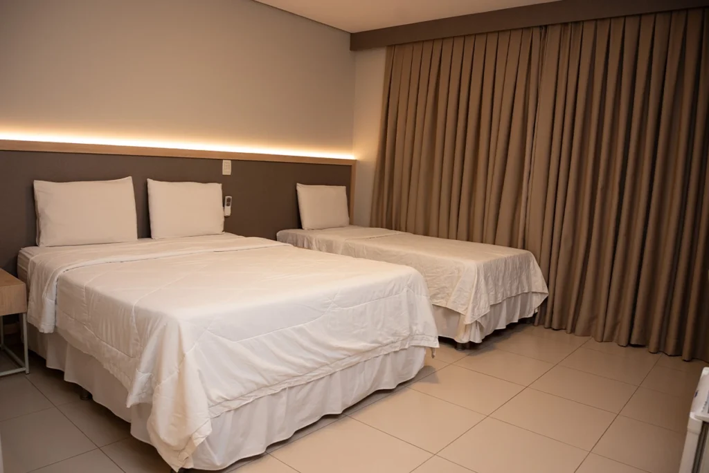O hotel oferece acomodações confortáveis, pensadas para proporcionar tranquilidade e qualidade de sono. Entre as opções, estão: